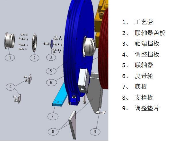 10、將調(diào)整擋板安裝到電機支撐底板上,調(diào)整電機軸向位置。